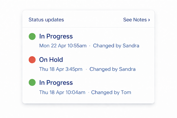 These are the moments that cost money, time, and trust - when a parcel goes missing, a customer disputes an item, or two similar jobs cross paths. Flow keeps the facts attached to the job, so you can resolve issues fast and keep work moving.